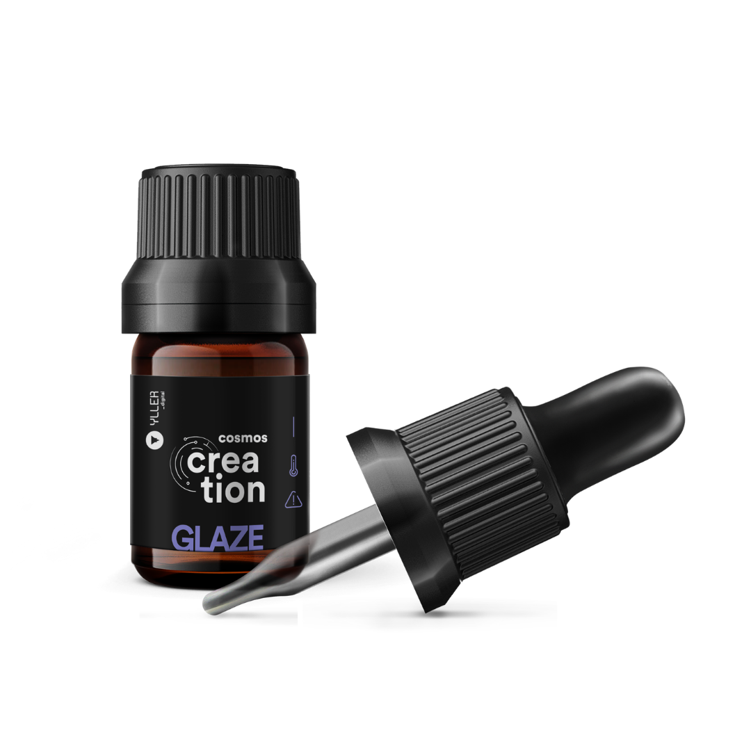 Cosmos Creation GLAZE es un material para uso en acrílicos, resinas compuestas y materiales producidos por impresión 3D. Proporciona brillo sin pulido, alta dureza superficial y resistencia a la abrasión.